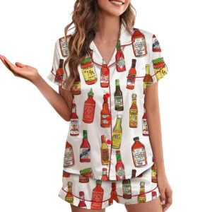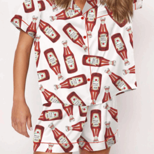 Ketchup Bottle Silk Satin Pajama Set For Women