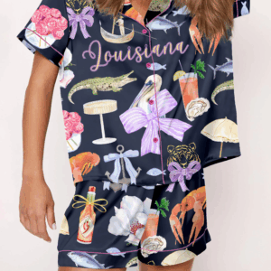 Louisiana Preppy Girl Silk Satin Pajama Set For Women