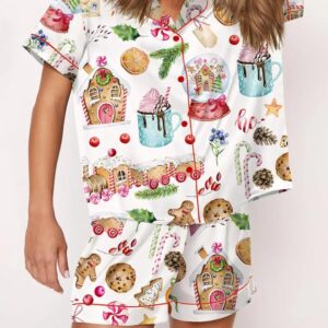 Watercolor Christmas Gingerbreads Silk Satin Pajama Set