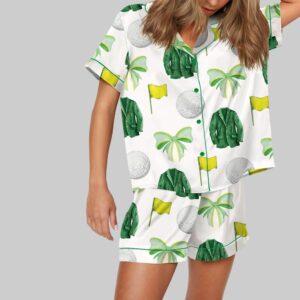 Martini Cocktail Lover Dachshund Cocktail Weenies Short Sleeve Satin Pajama Set For Women