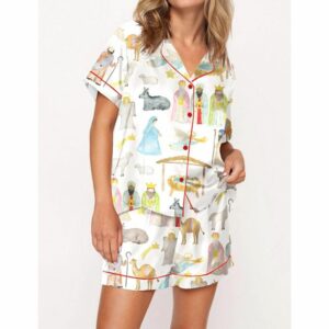 Nativity Christmas Watercolor Satin Pajama Set For Women