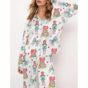 Preppy Nutcracker Christmas Satin Pajama Set For Women