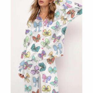 Princess Cute Ribbons And Bows Satin Pajama Set For Women