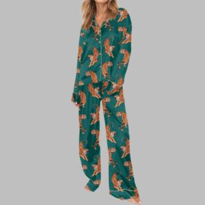 Vintage Canned Pickles Silk Satin Pajama Set For Women