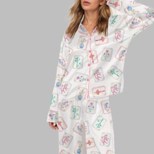 Watercolor Sacred Heart Satin Pajama Set For Women