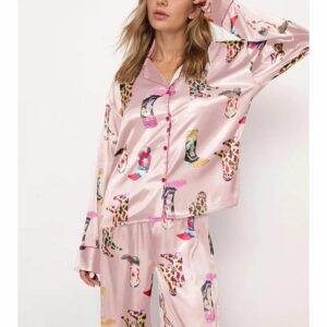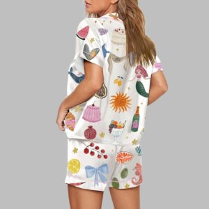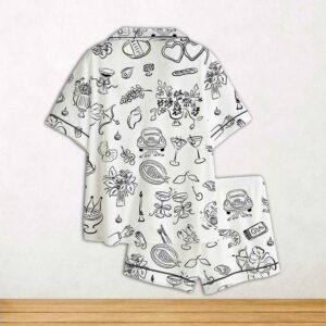 Whimsical Wedding Doodles For Wedding Print Short Sleeve Satin Pajama Set For Women