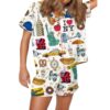 4th Of July Floral Silky Satin Pajama Set