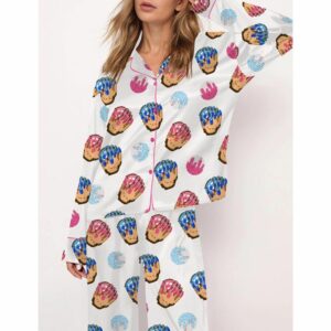 Baseball Ice Cream Drip Satin Pajama Set For Women