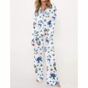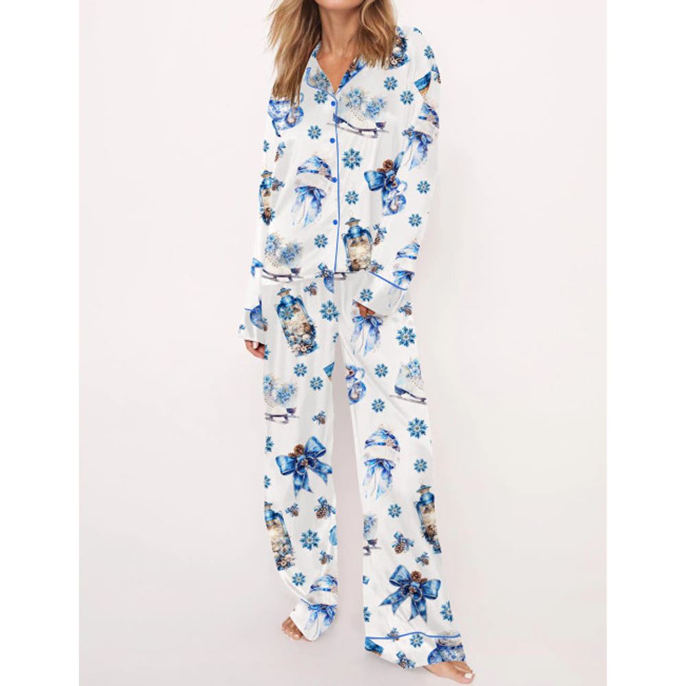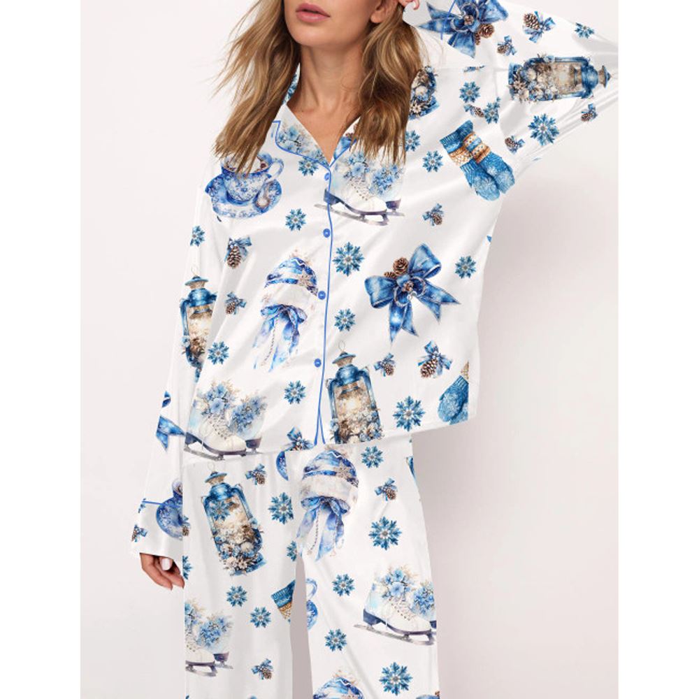 Blue Winter Satin Pajama Set For Women