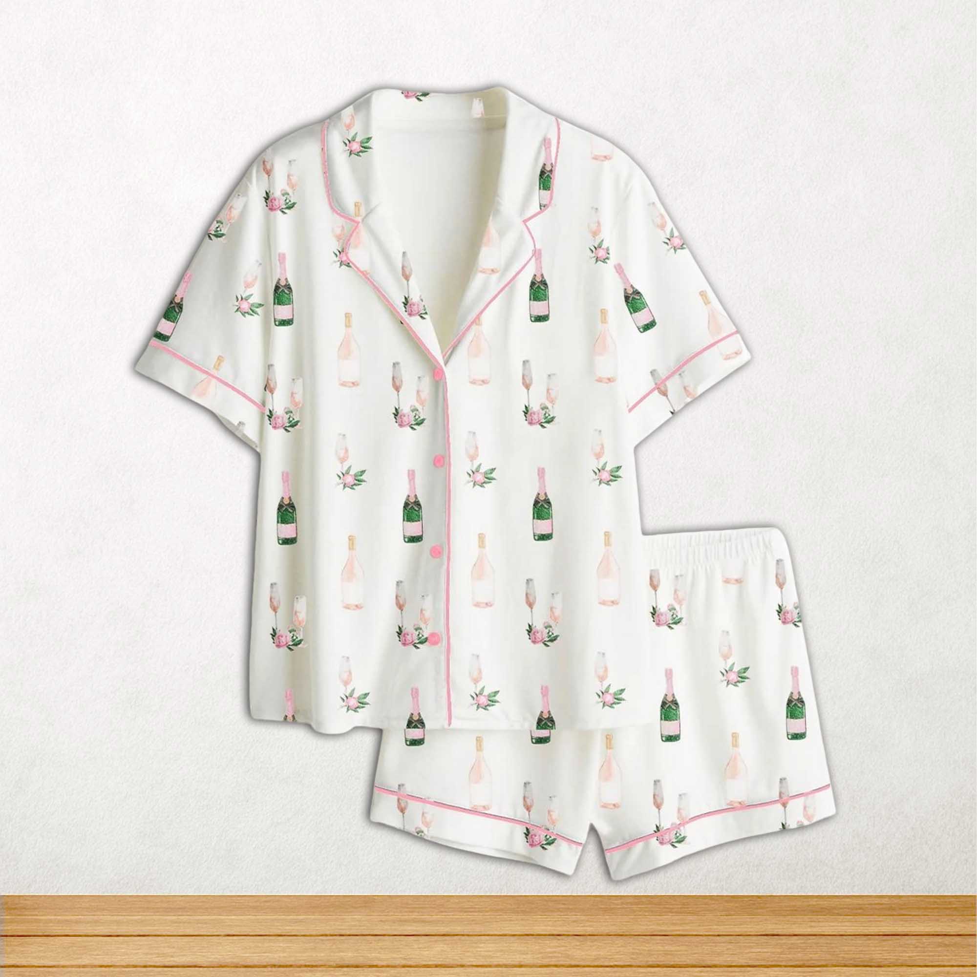 Breakfast Of Champs Short Sleeve Satin Pajama Set For Women