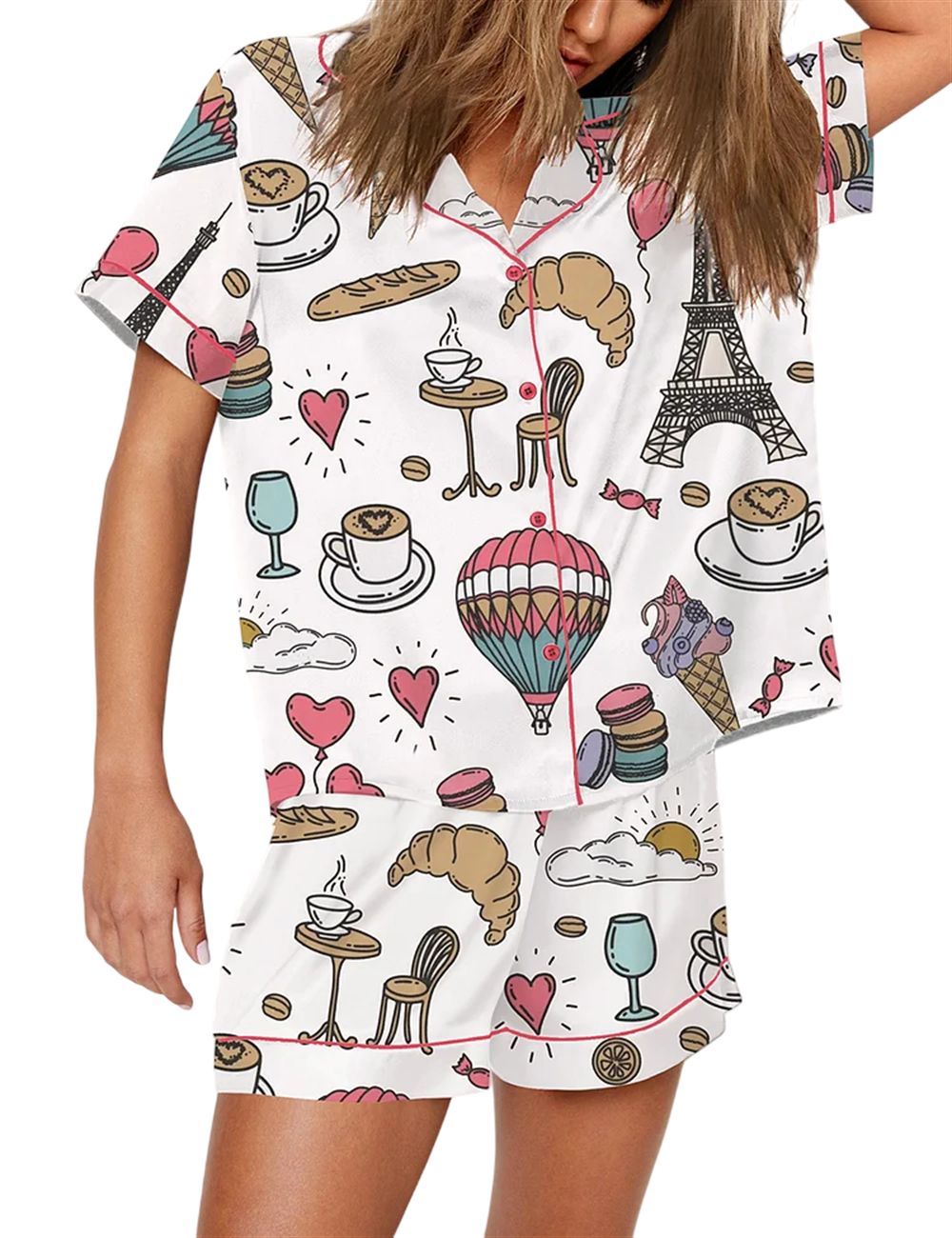 Chic Paris Vintage Style Paris France Travel Print Pajama Set