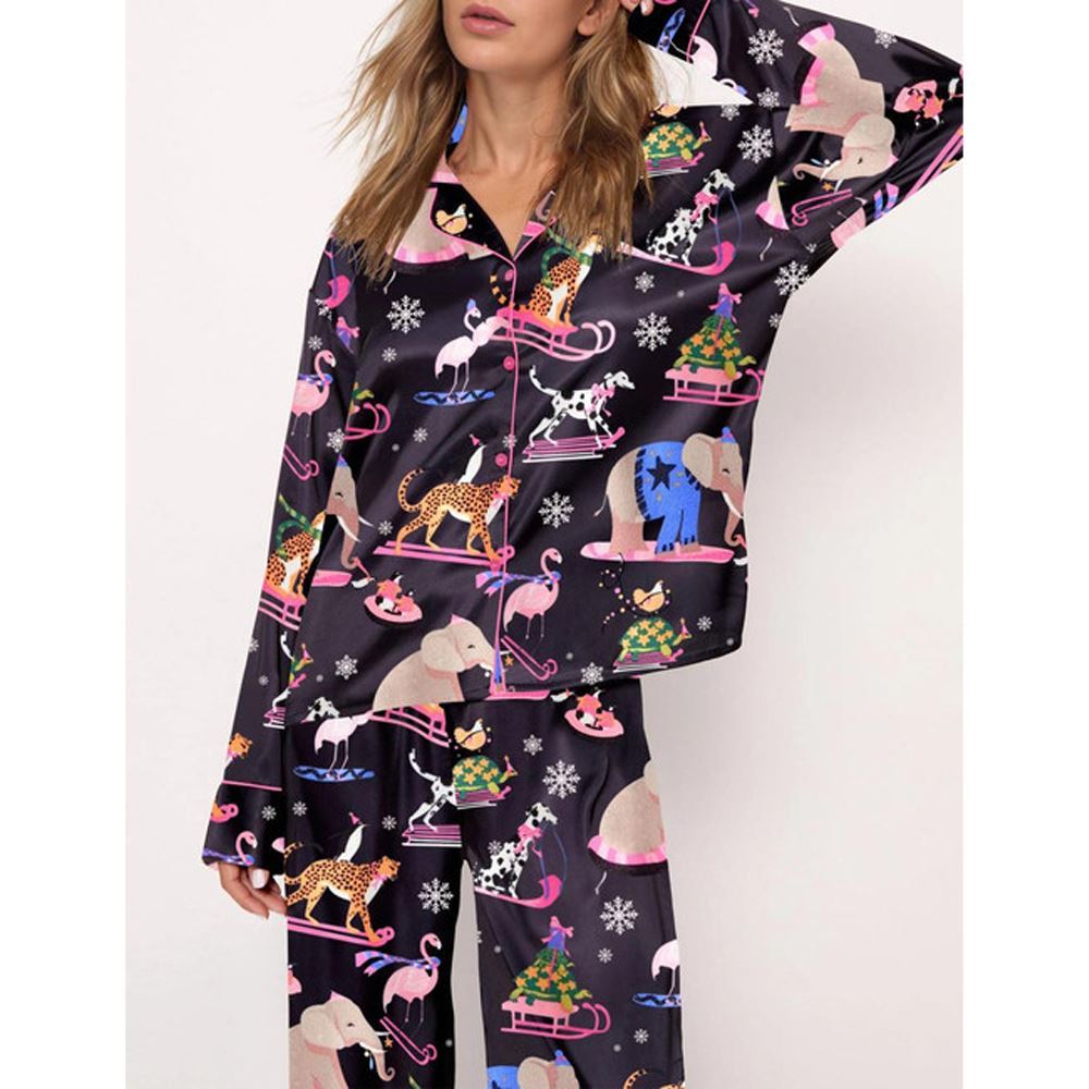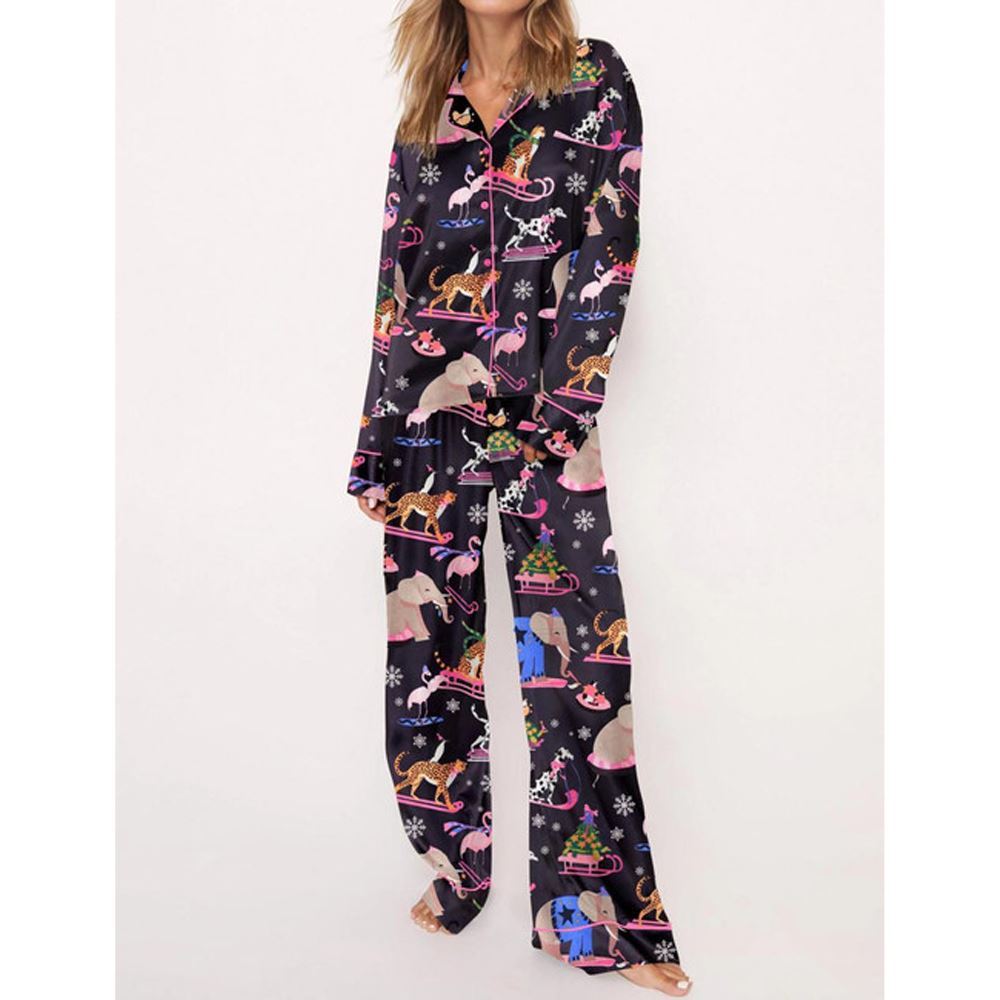 Christmas Animals Satin Pajama Set For Women