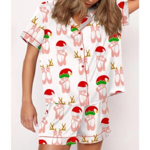 Christmas Ballet Shoes Satin Pajama Set For Women