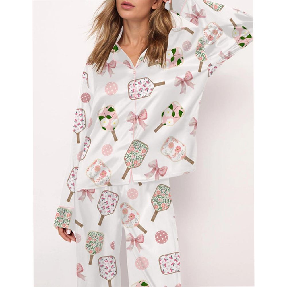 Coquette Pickleball Satin Pajama Set For Women