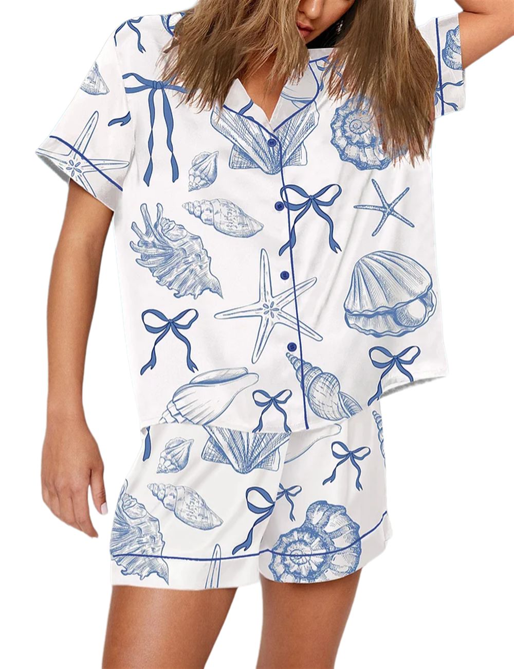 Coquette Seashell Beach Coastal Summer Vibes Pajama Set
