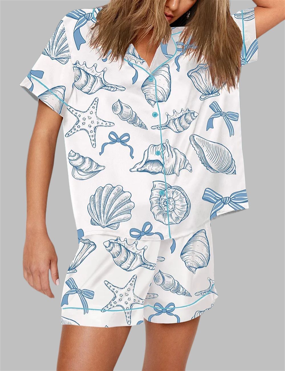 Coquette Seashell Coastal Summer Vibes Pajama Set