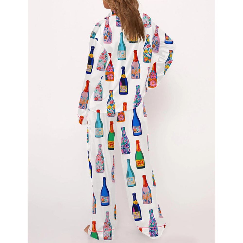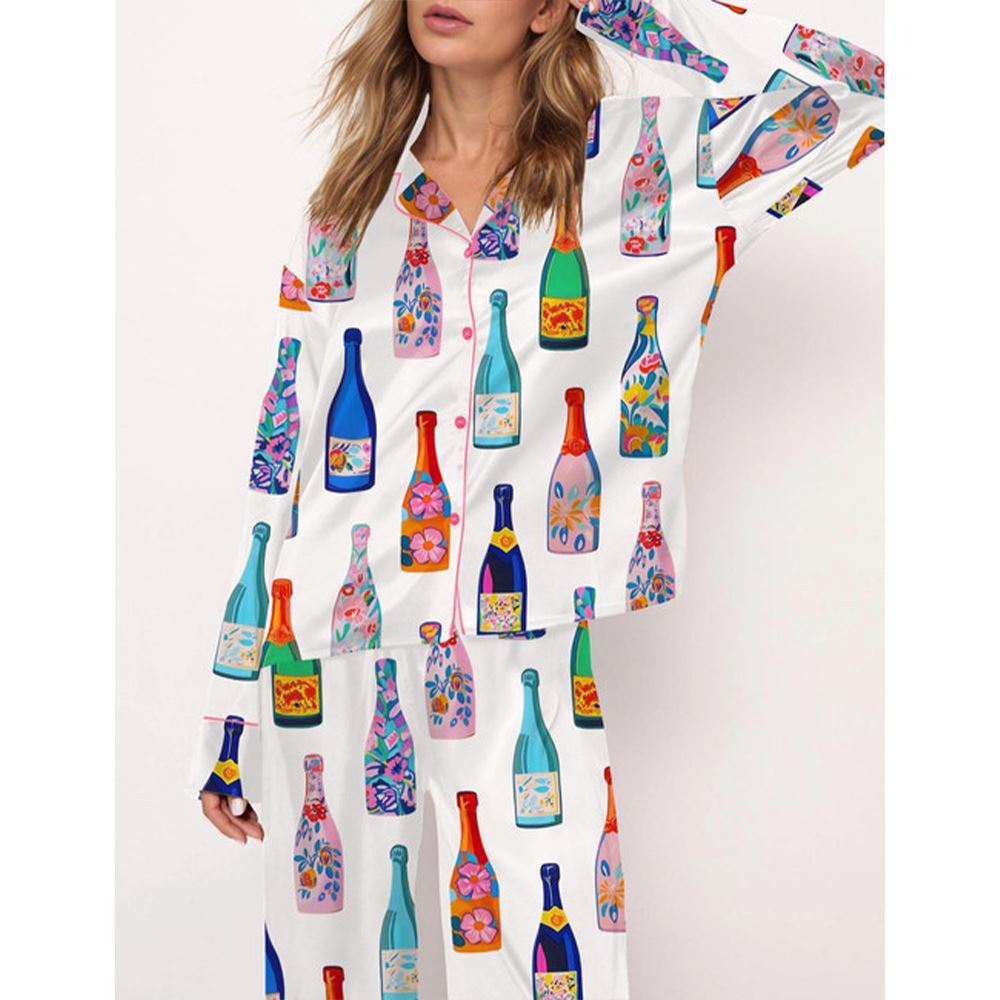 Floral Champagne Bottle Pajama Set For Women