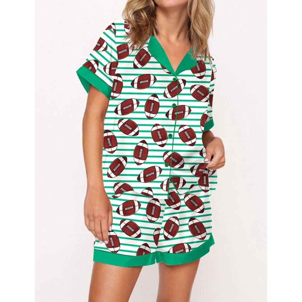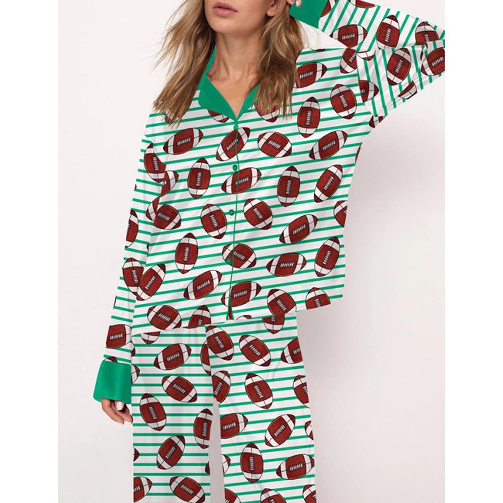 Football Stripes Satin Pajama Set For Women