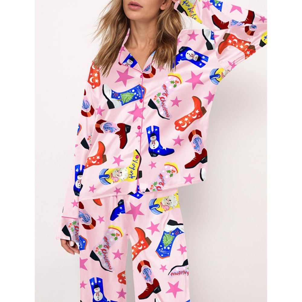 Howdy Holidays Cowboy Boot Satin Pajama Set For Women