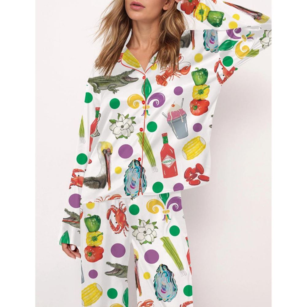 Louisiana Mardi Gras Satin Pajama Set For Women