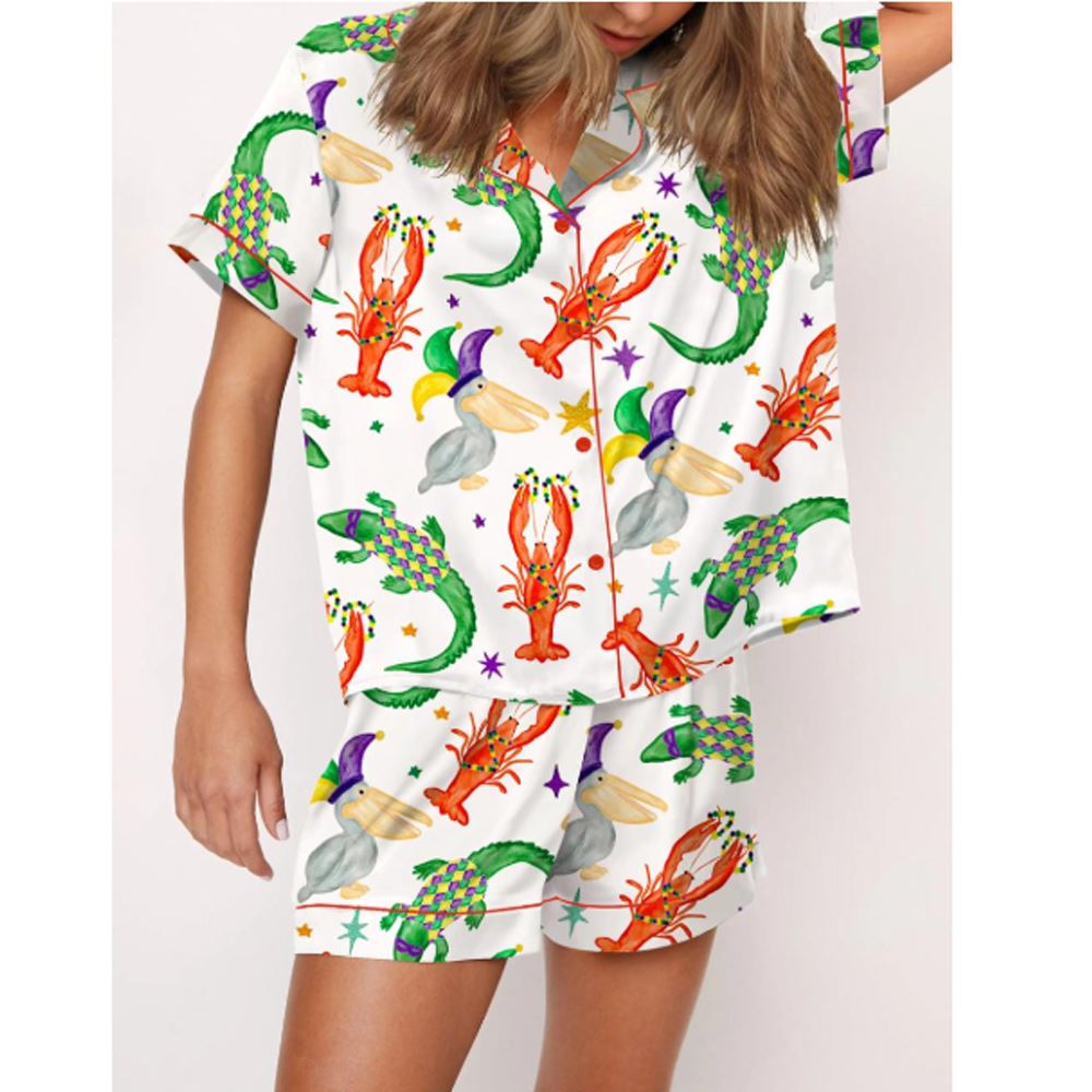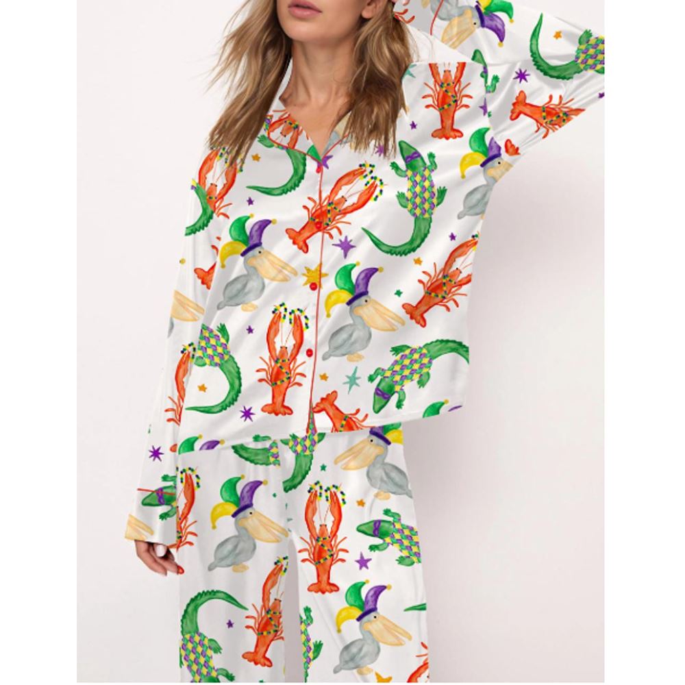 Mardi Gras Cajun Animal Trio Satin Pajama Set For Women