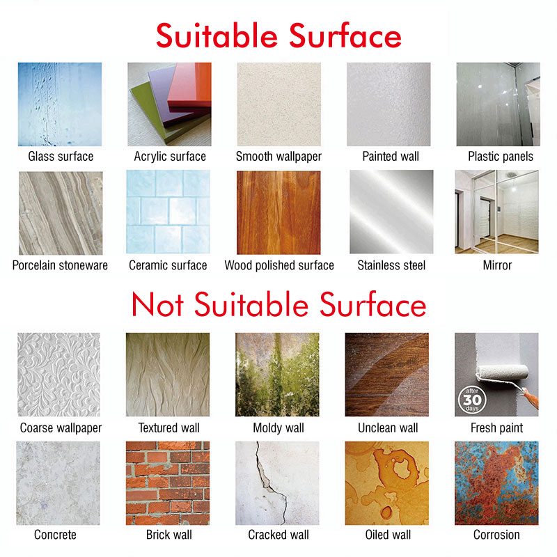 - Position the adhesive on a plane surface without pressing them, so that it lets possibility to withdraw them and reposition again.