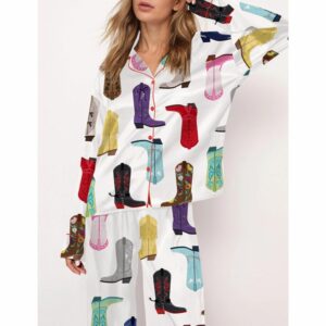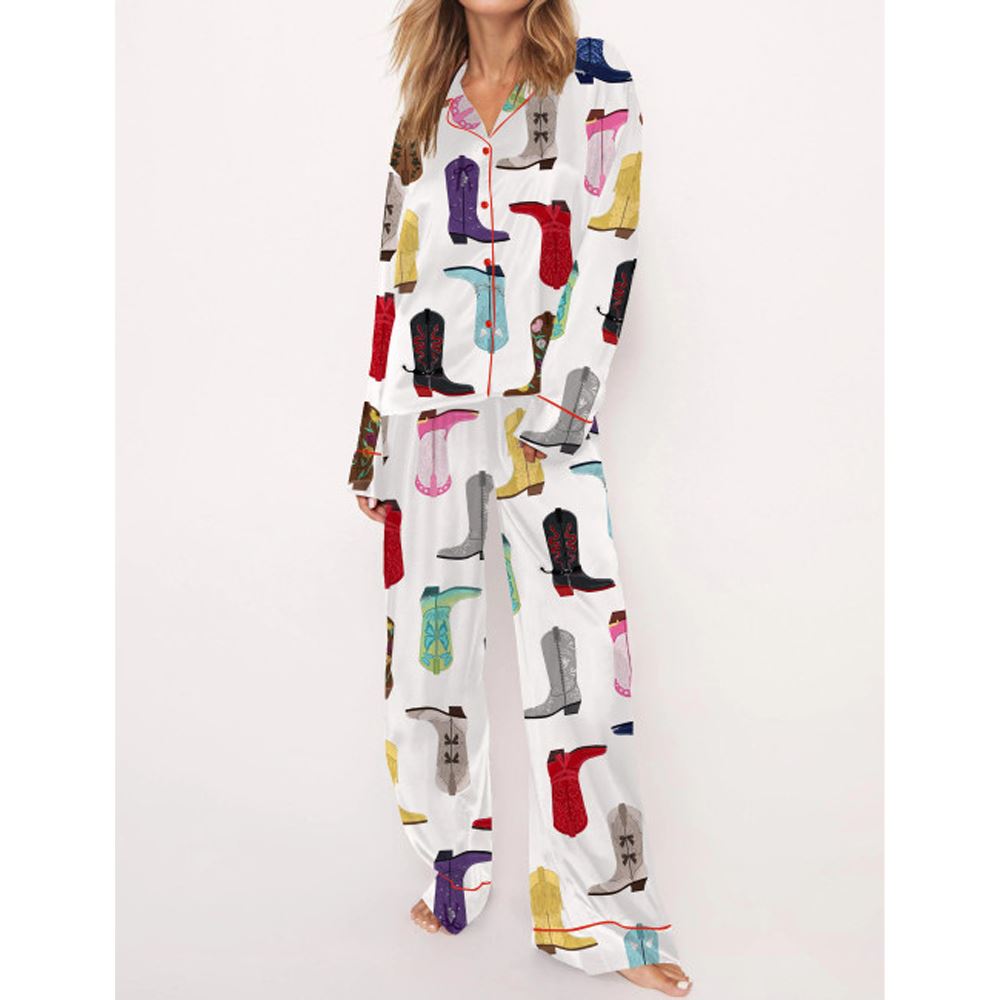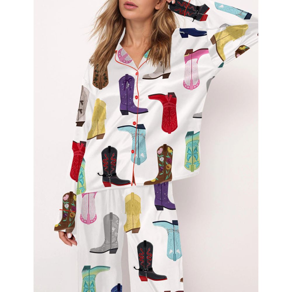 Music Tour Cowboy Boots Satin Pajama Set For Women