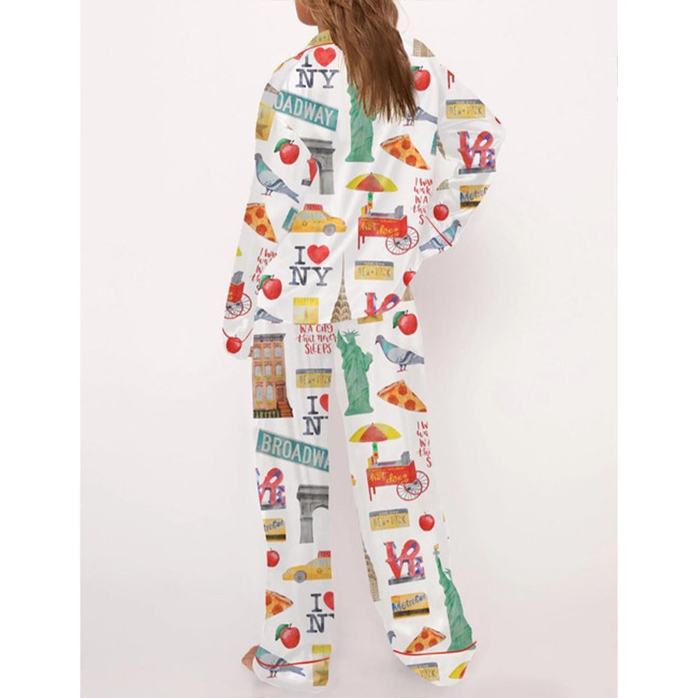 New York City Travel Satin Pajama Set For Women