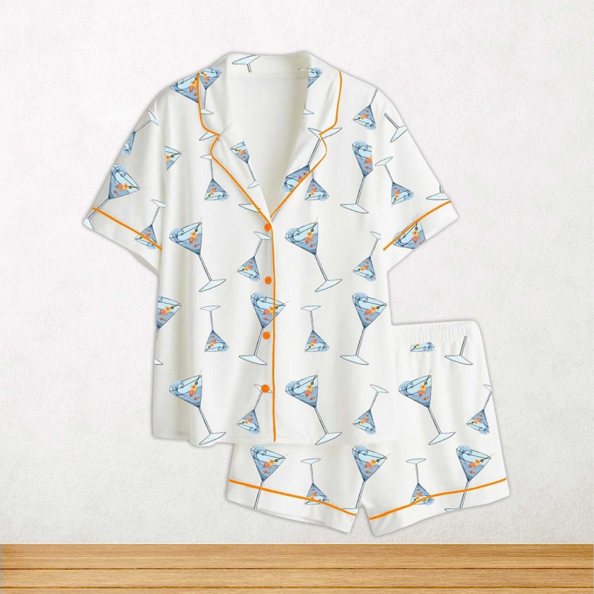 One Seatini Please Martini Short Sleeve Satin Pajama Set For Women