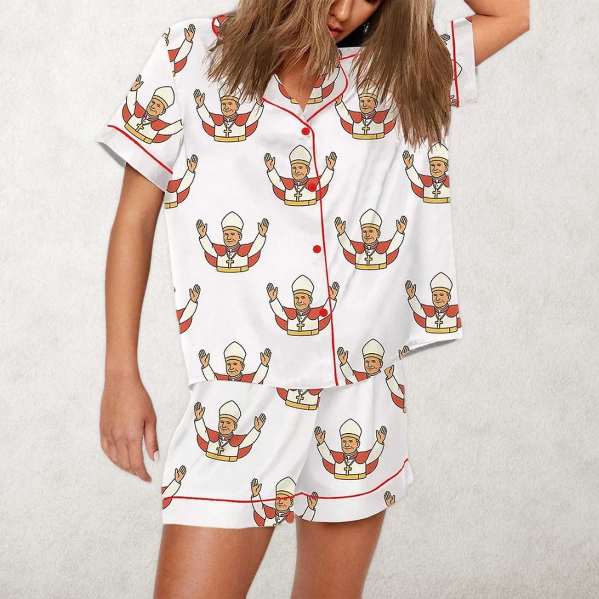 Pope Leo XIV Catholic Print Pajama Set For Women