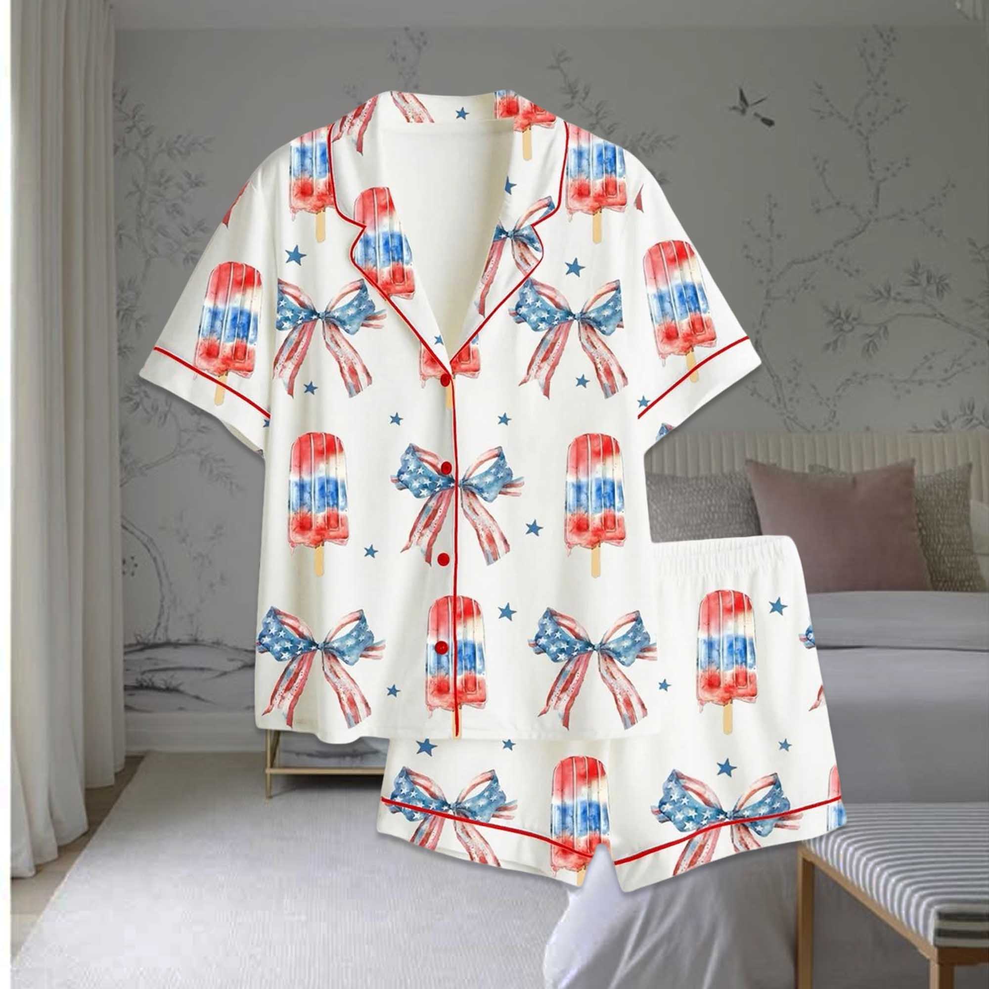 Popsicle Patriotic Coquette Bow American Satin Pajama Set