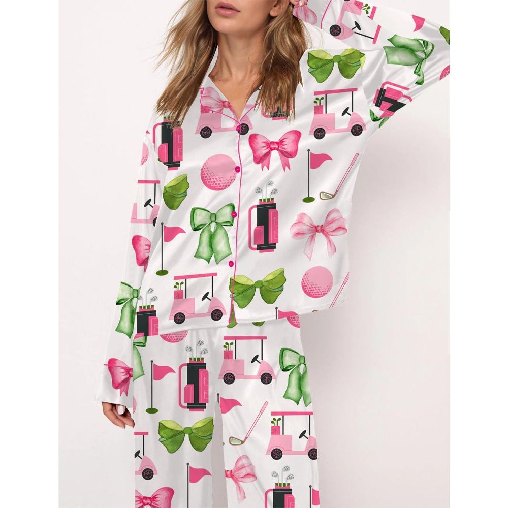 Preppy Coquette Golf Satin Pajama Set For Women