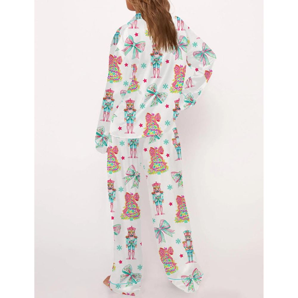 Preppy Nutcracker Christmas Satin Pajama Set For Women
