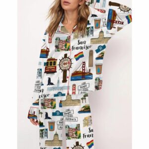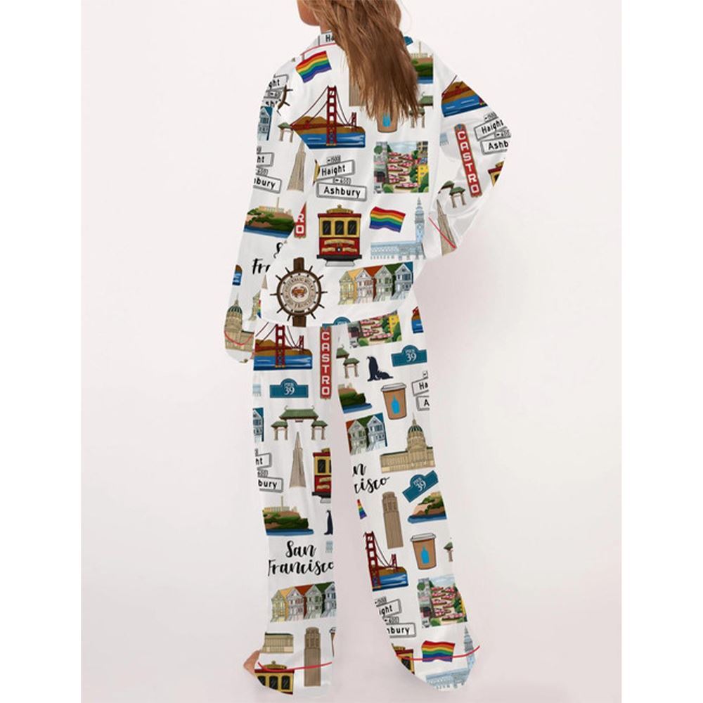 San Francisco Travel Satin Pajama Set For Women