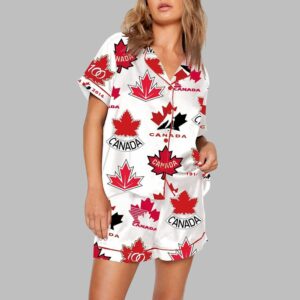 Team Canada Hockey Print Satin Pajama Set