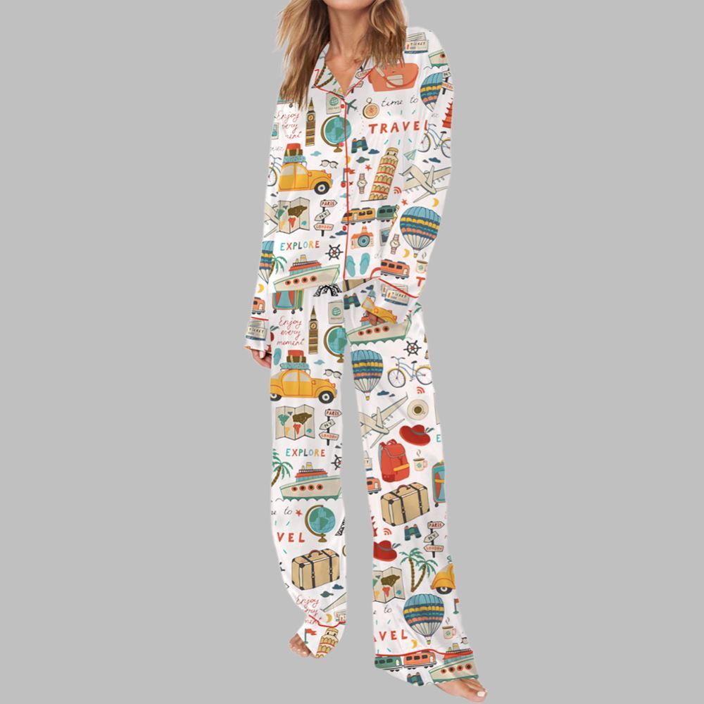 Time To Travel Pajama Set For Women
