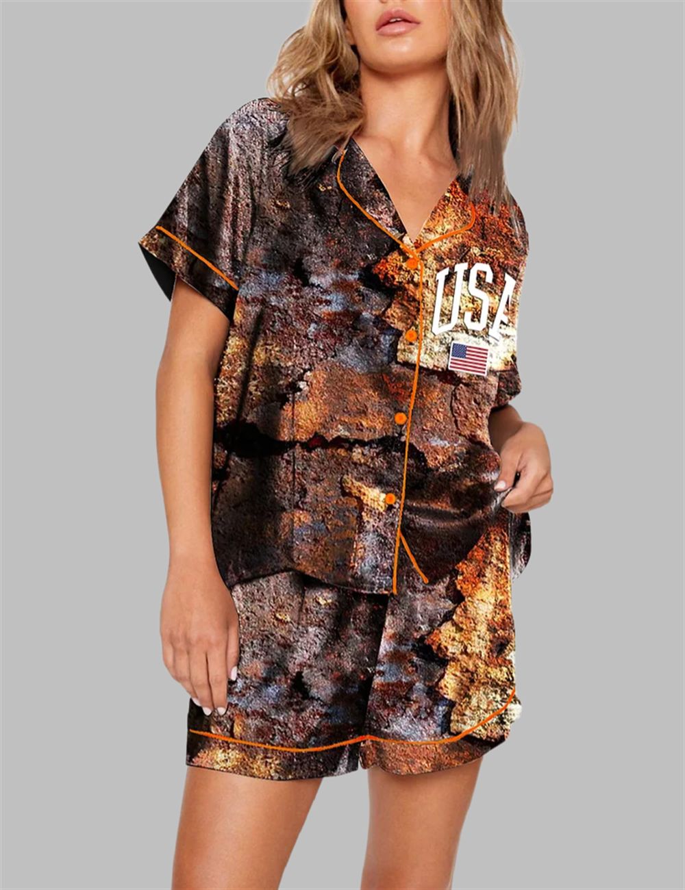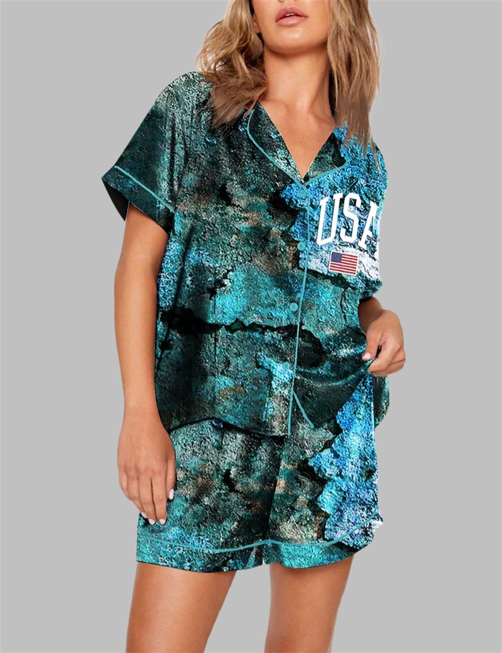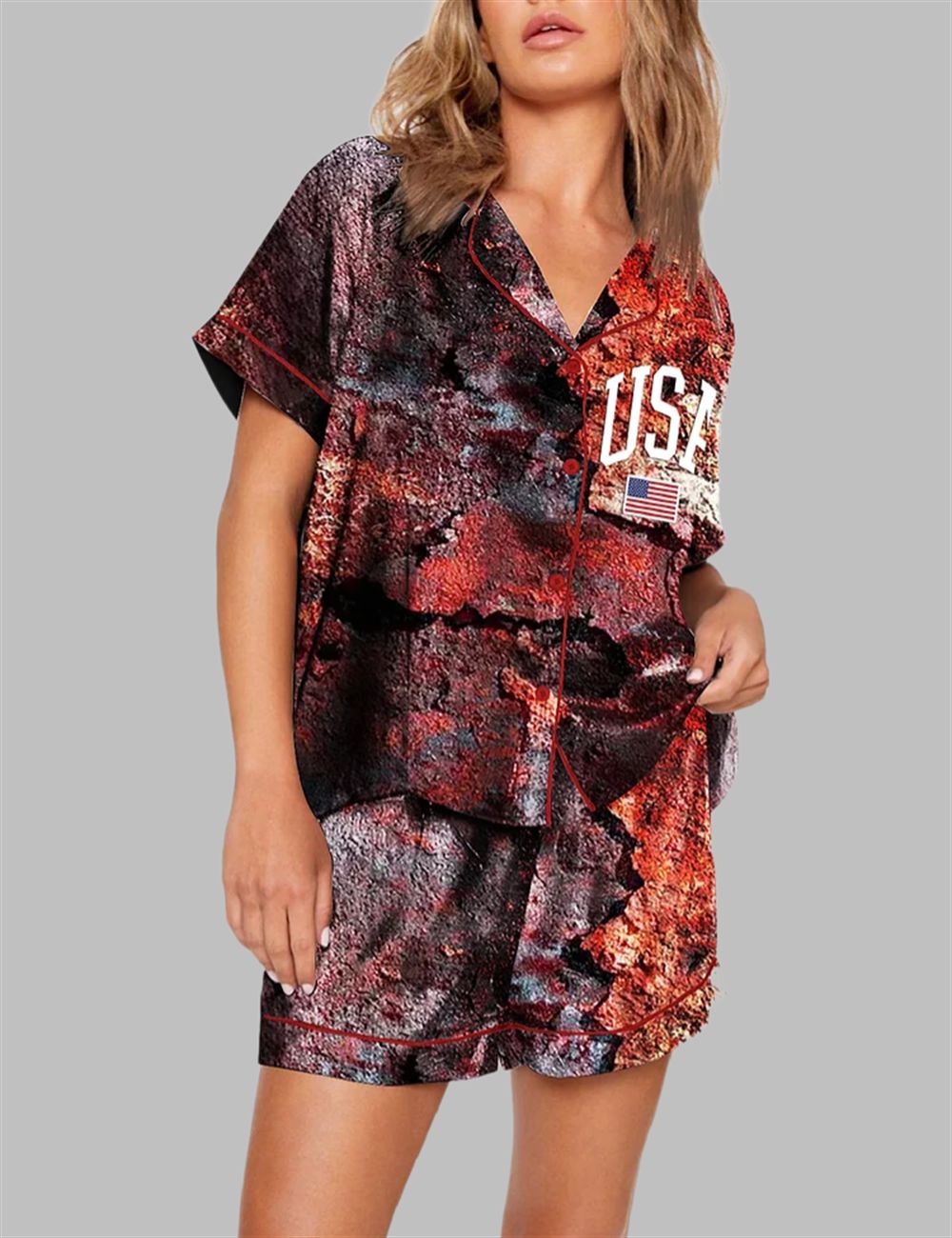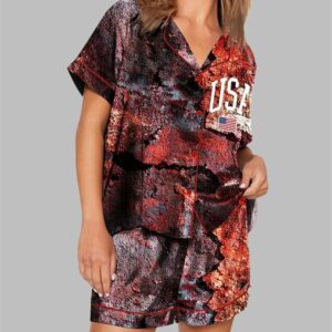 USA Flag Dilapidated Ruins Print Pajama Set