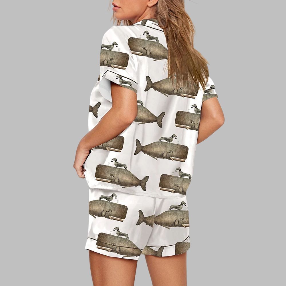 Vintage Dachshund Dog Riding Whale Pajama Set