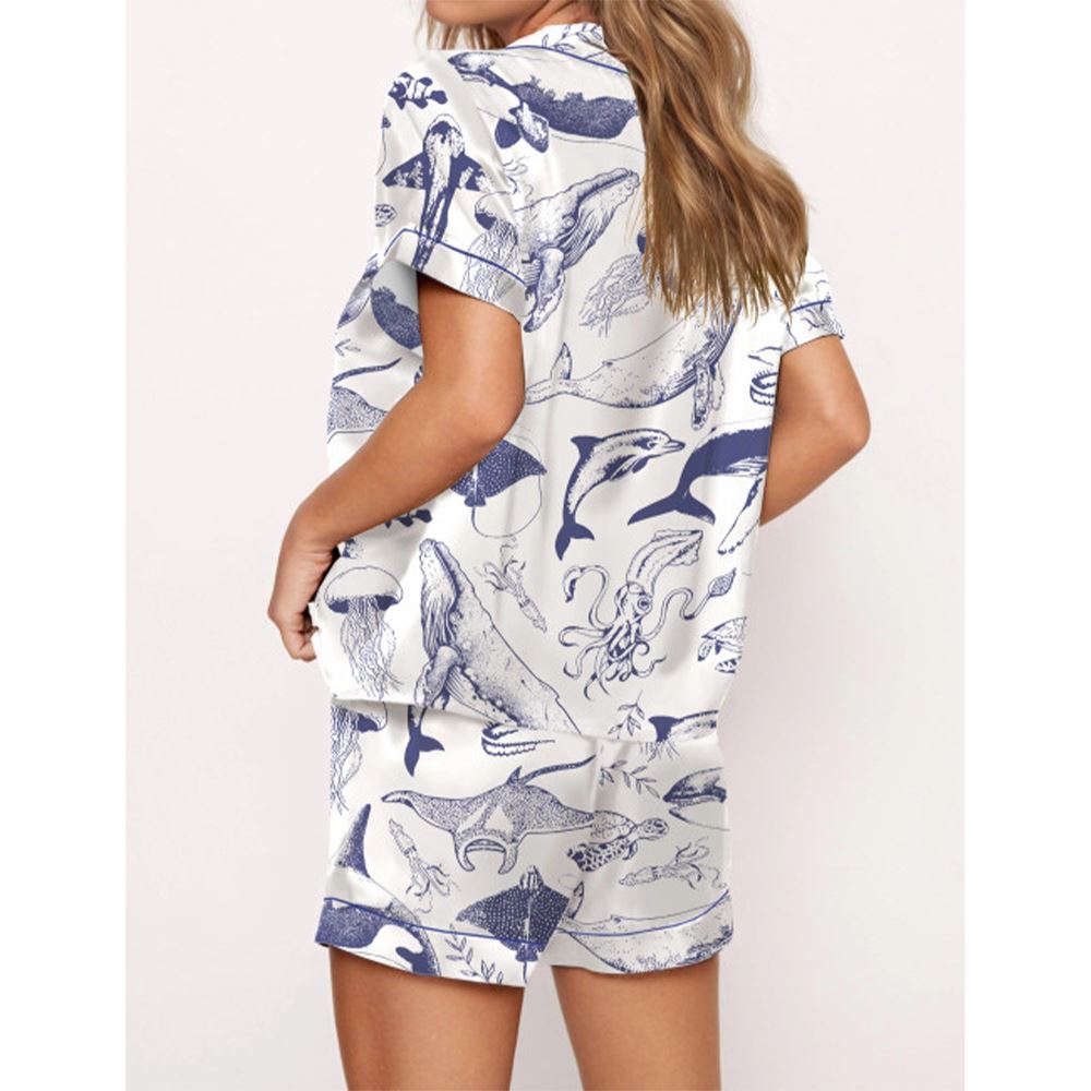 Vintage Sea Animals Pajama Set For Women