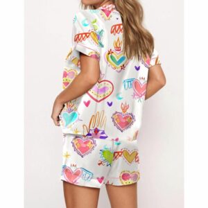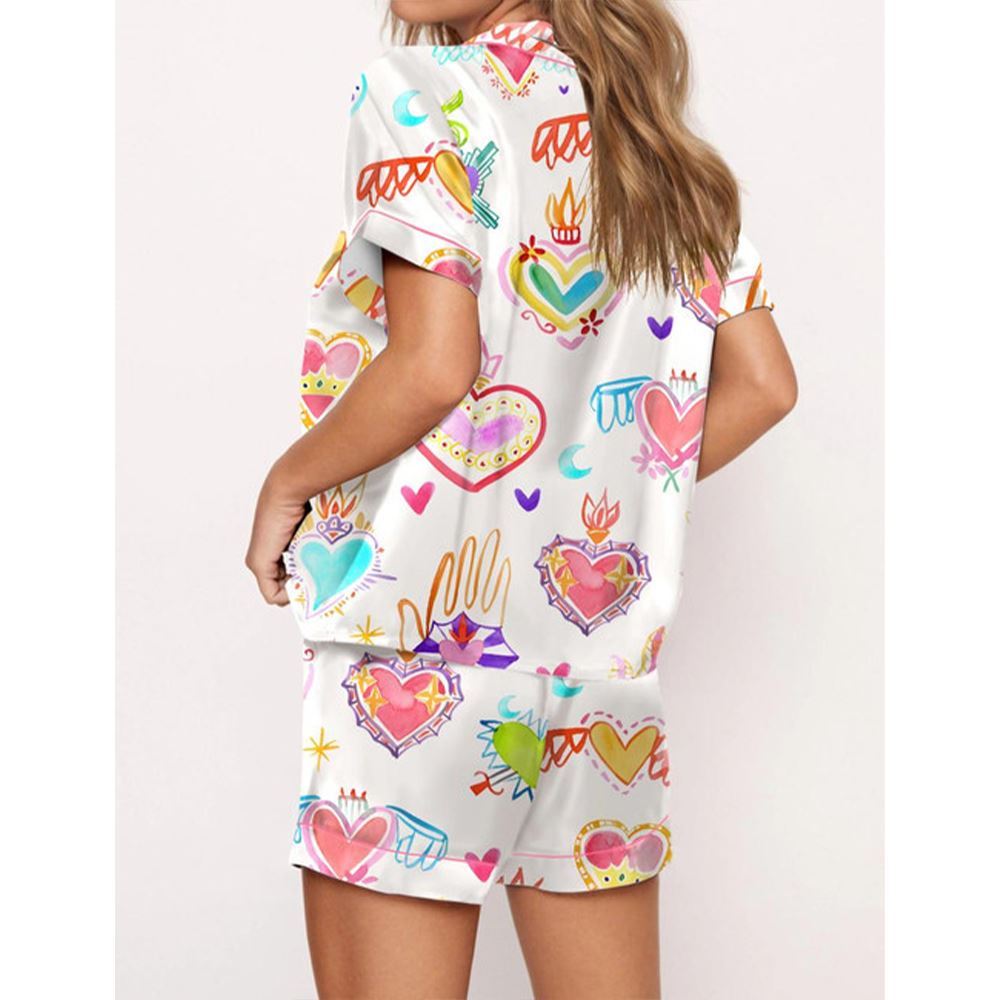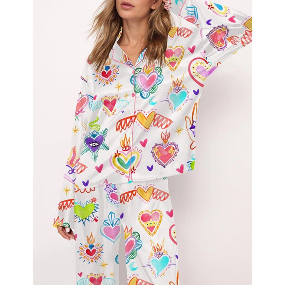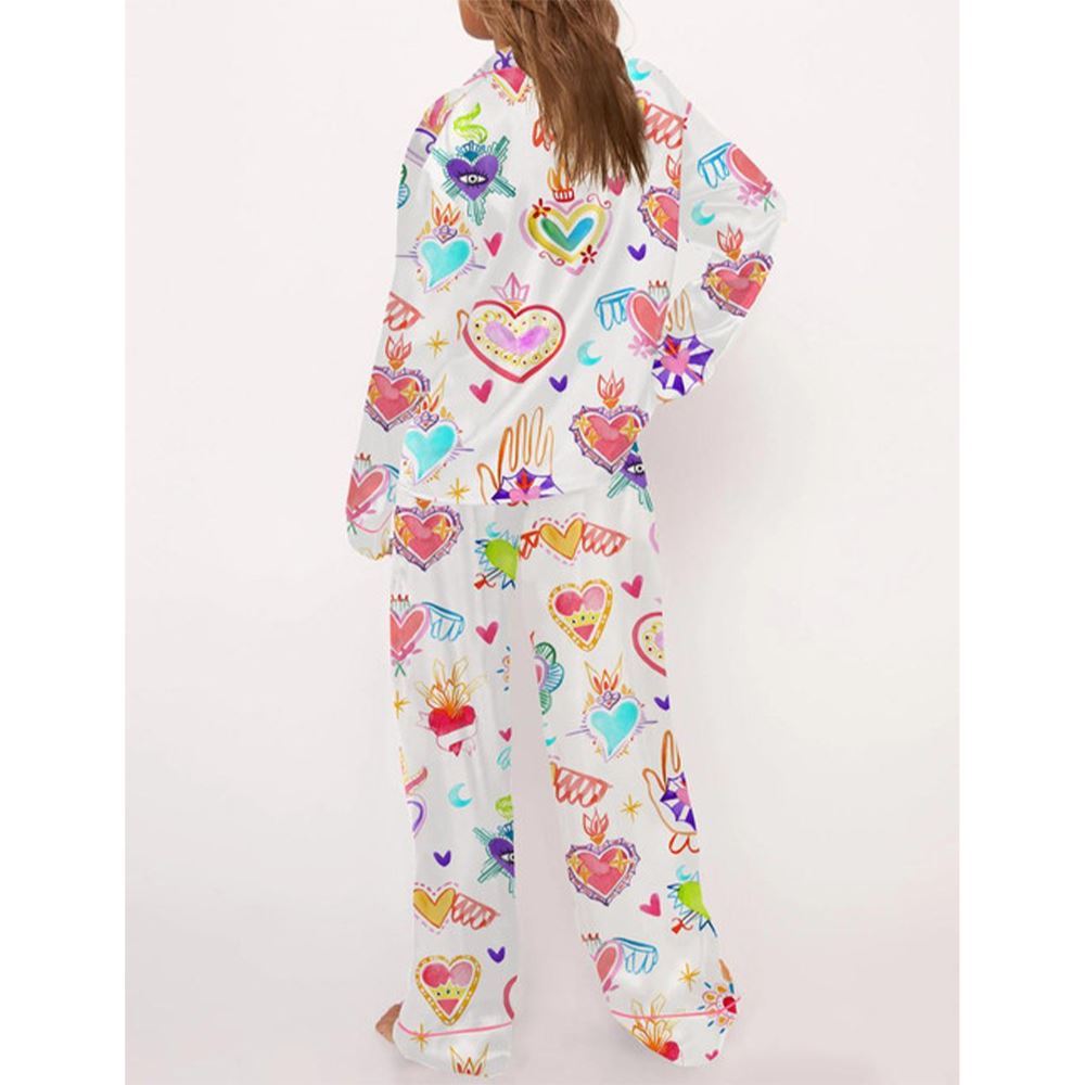 Watercolor Sacred Heart Satin Pajama Set For Women