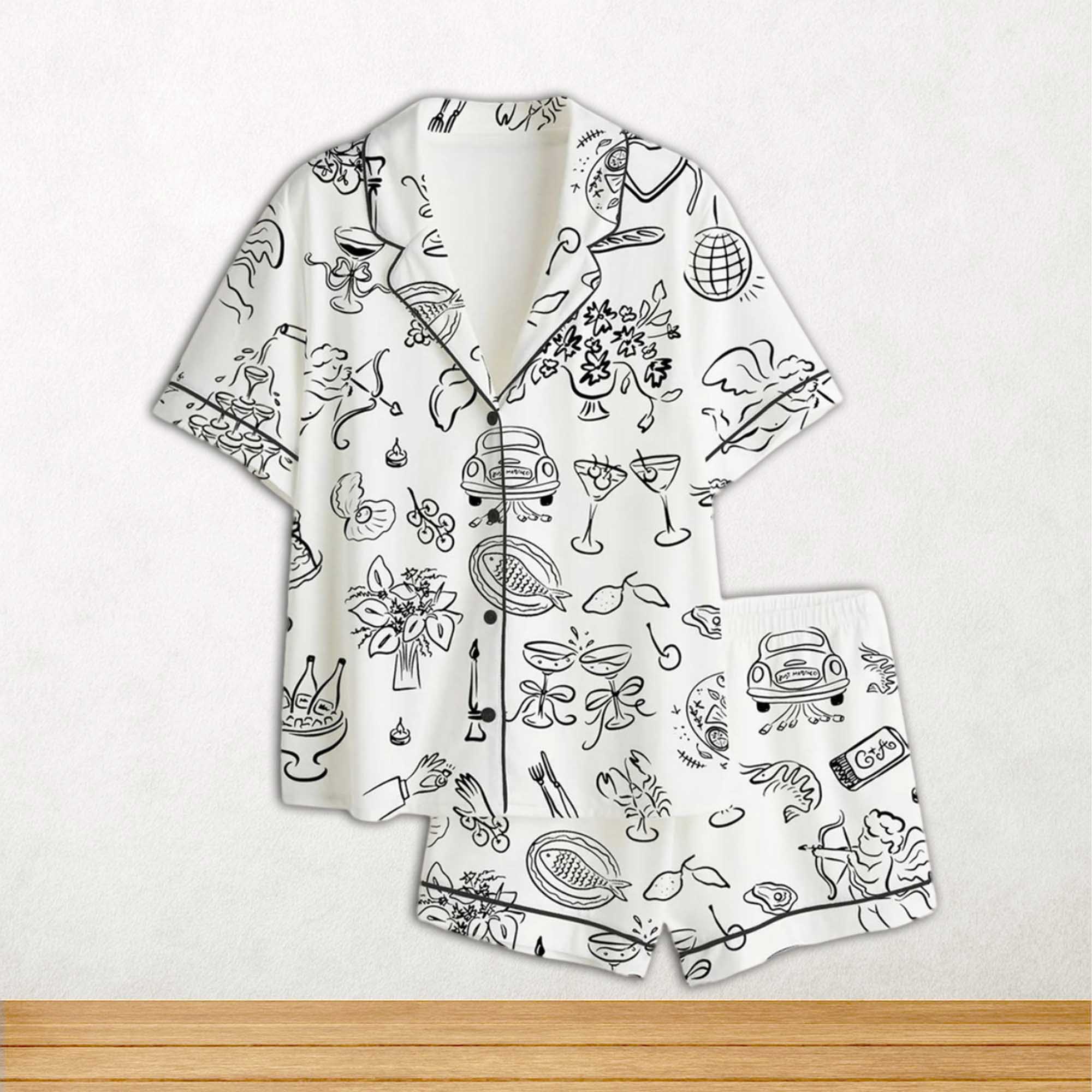 Whimsical Wedding Doodles For Wedding Print Short Sleeve Satin Pajama Set For Women