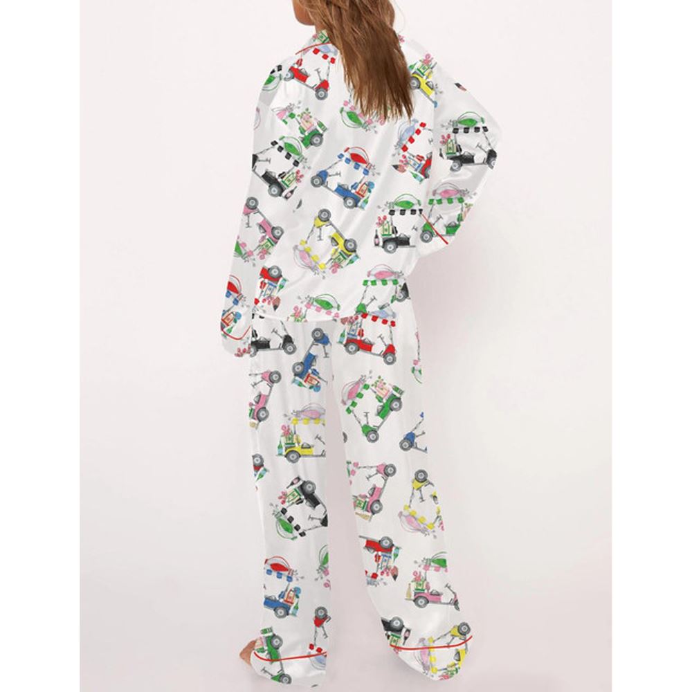 Wine Bottle Golf Cart Satin Pajama Set For Women