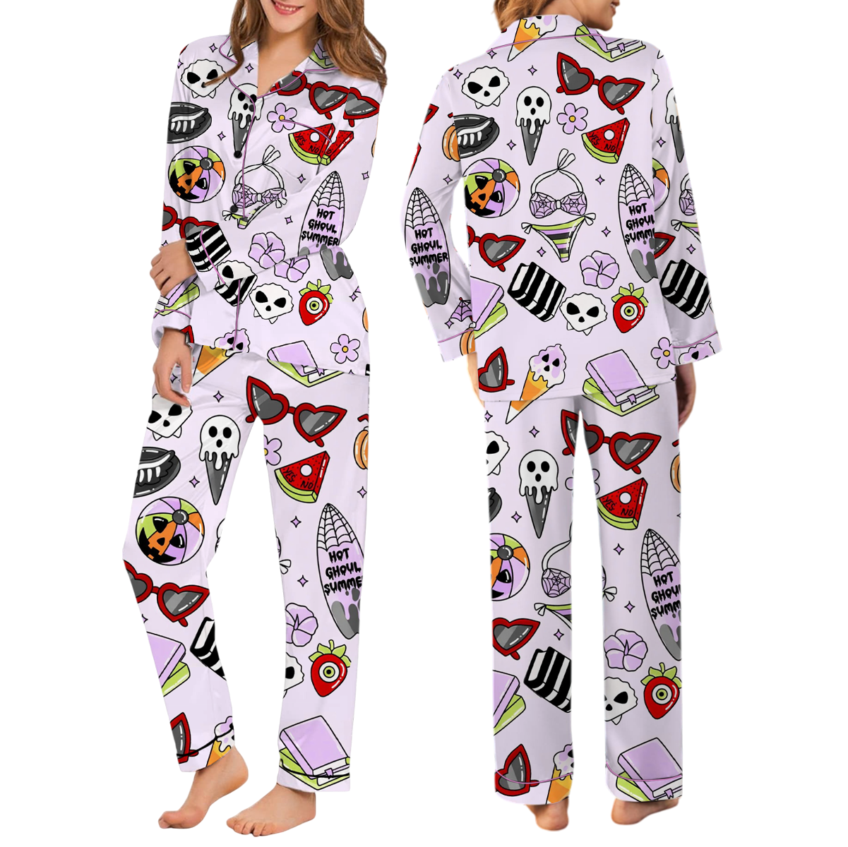 Women’s Funny Halloween Satin Pajamas Set For Women