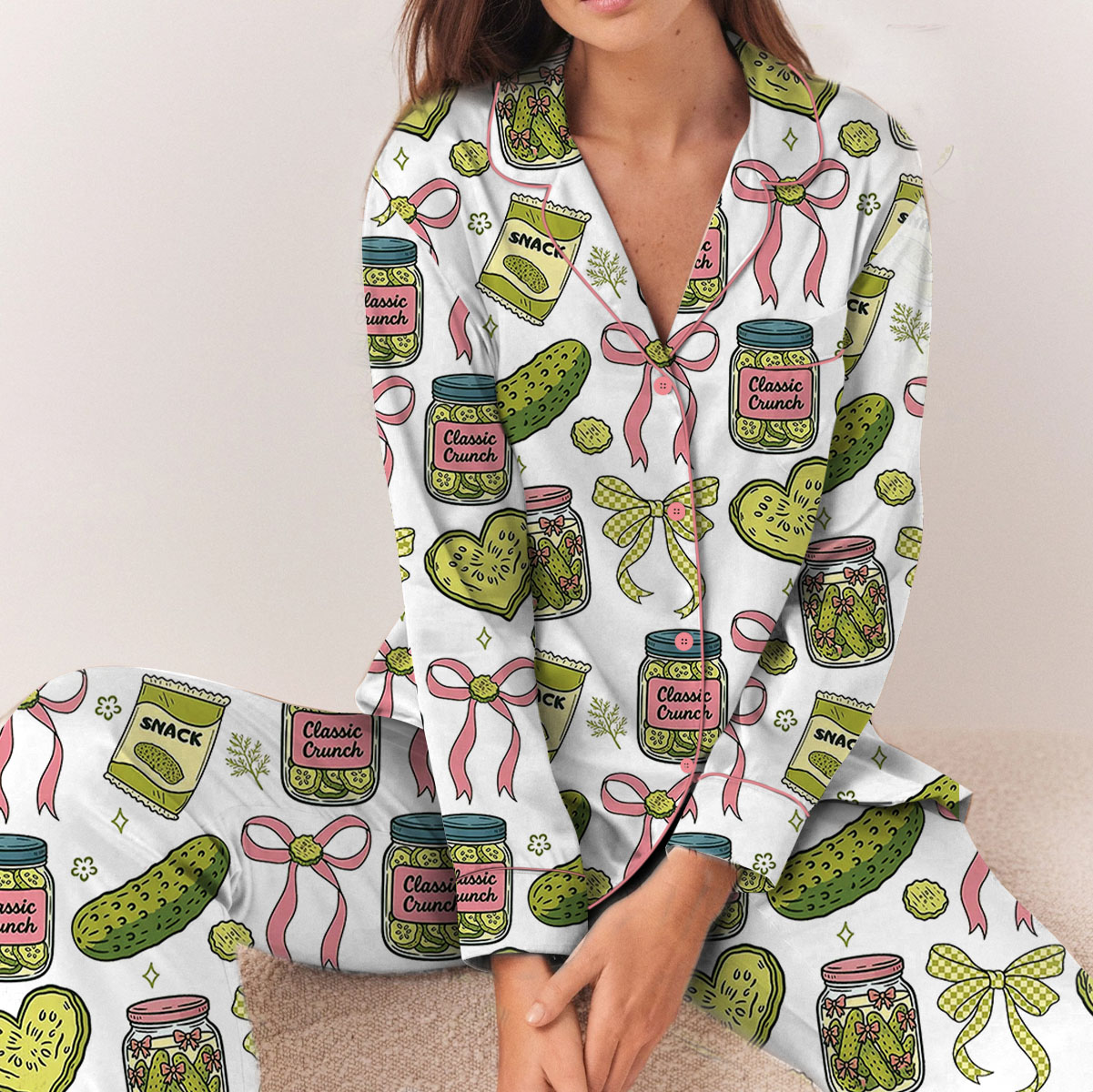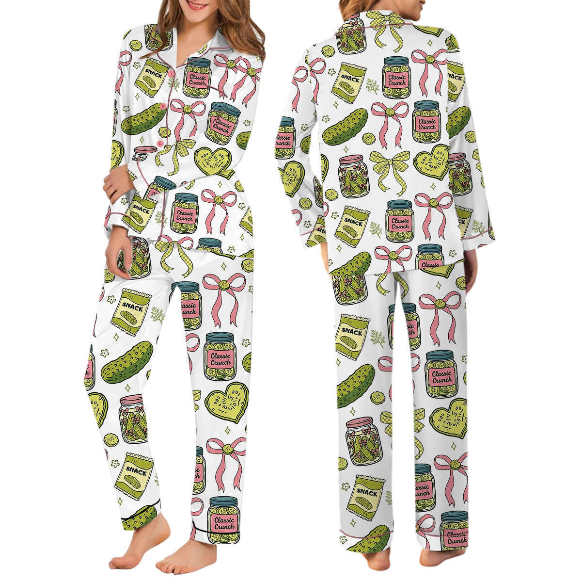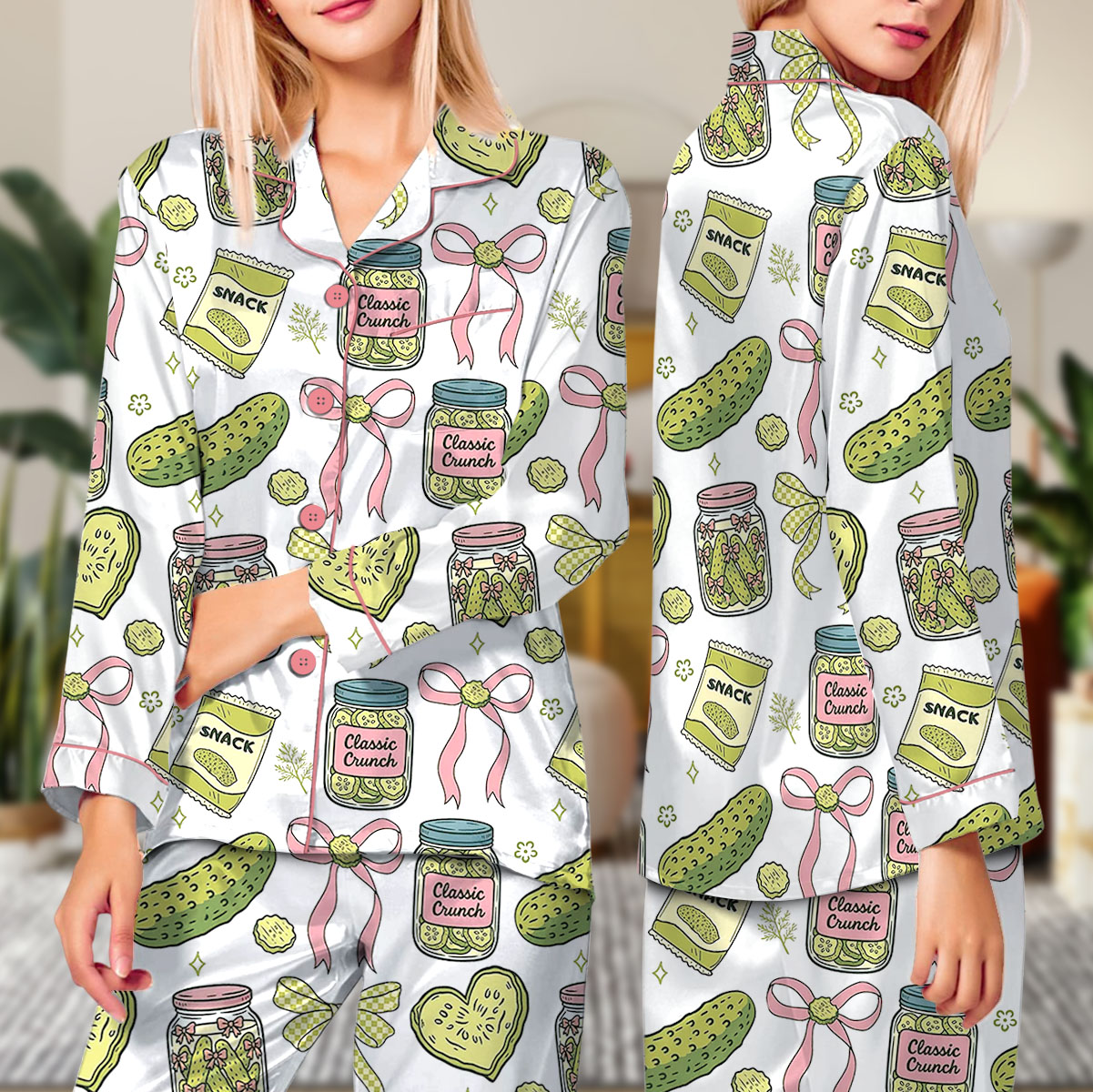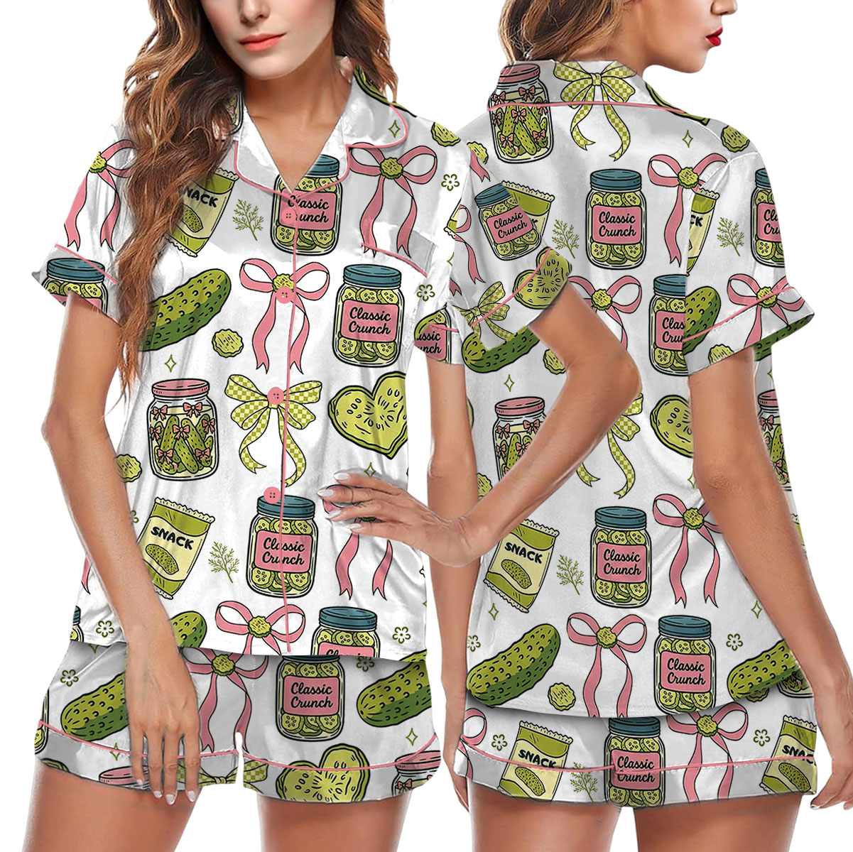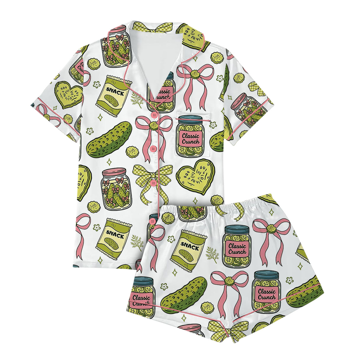 Women’s Pickle Print Satin Pajamas Set