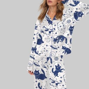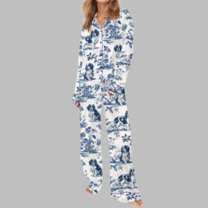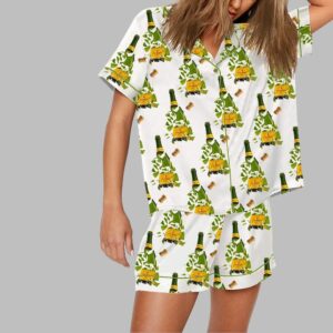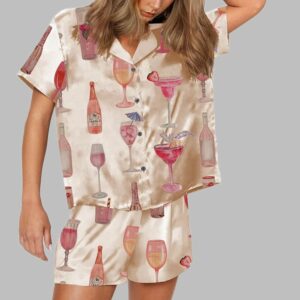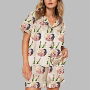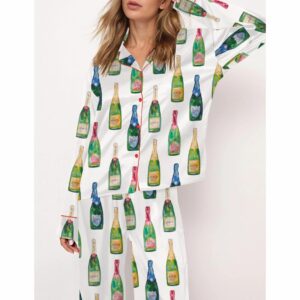 Champagne Bottle Watercolor Satin Pajama Set For Women