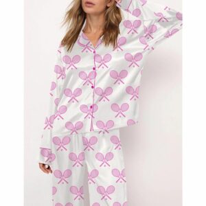 Champagne Tennis Satin Pajama Set For Women