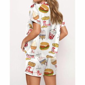 Chicken Nuggets Fast Food Satin Pajama Set For Women