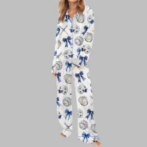 Chinoiserie Baseball Silky Satin Pajama Set For Women