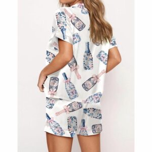 Chinoiserie Bow Silky Satin Pajama Set For Women