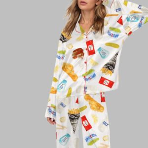 Chinoiserie Dachshund Silky Satin Pajama Set For Women